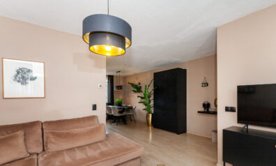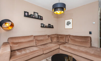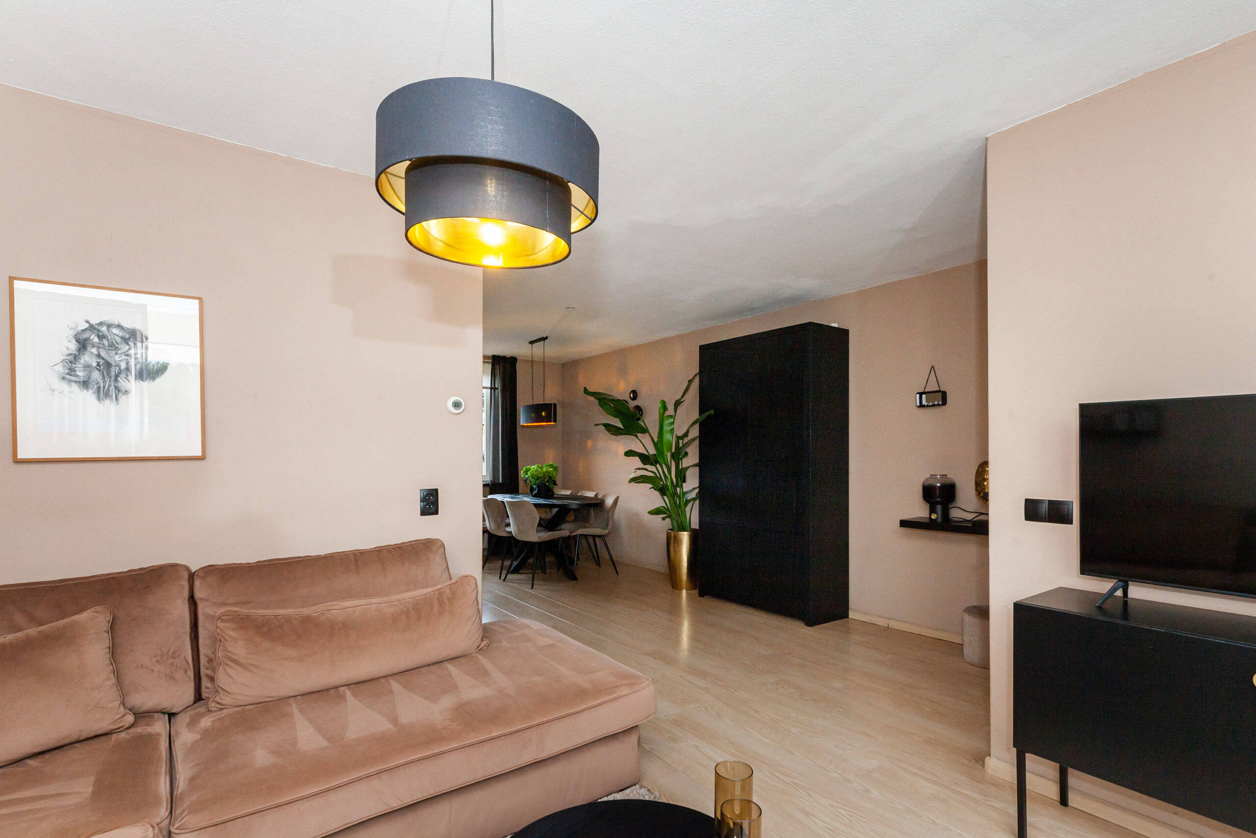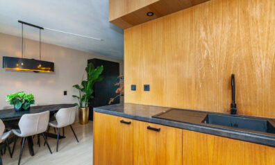 De woonkamer is Z-vormige en de ruimte moet u hier echt ervaren. Aan de voorzijde is momenteel de zithoek gegroepeerd waar u voldoende plaats heeft om een groot bankstel te plaatsen. Loopt u verder langs de tussenhal dan komt u aan de achterzijde bij de eethoek. Deze staat in open verbinding met de keuken.