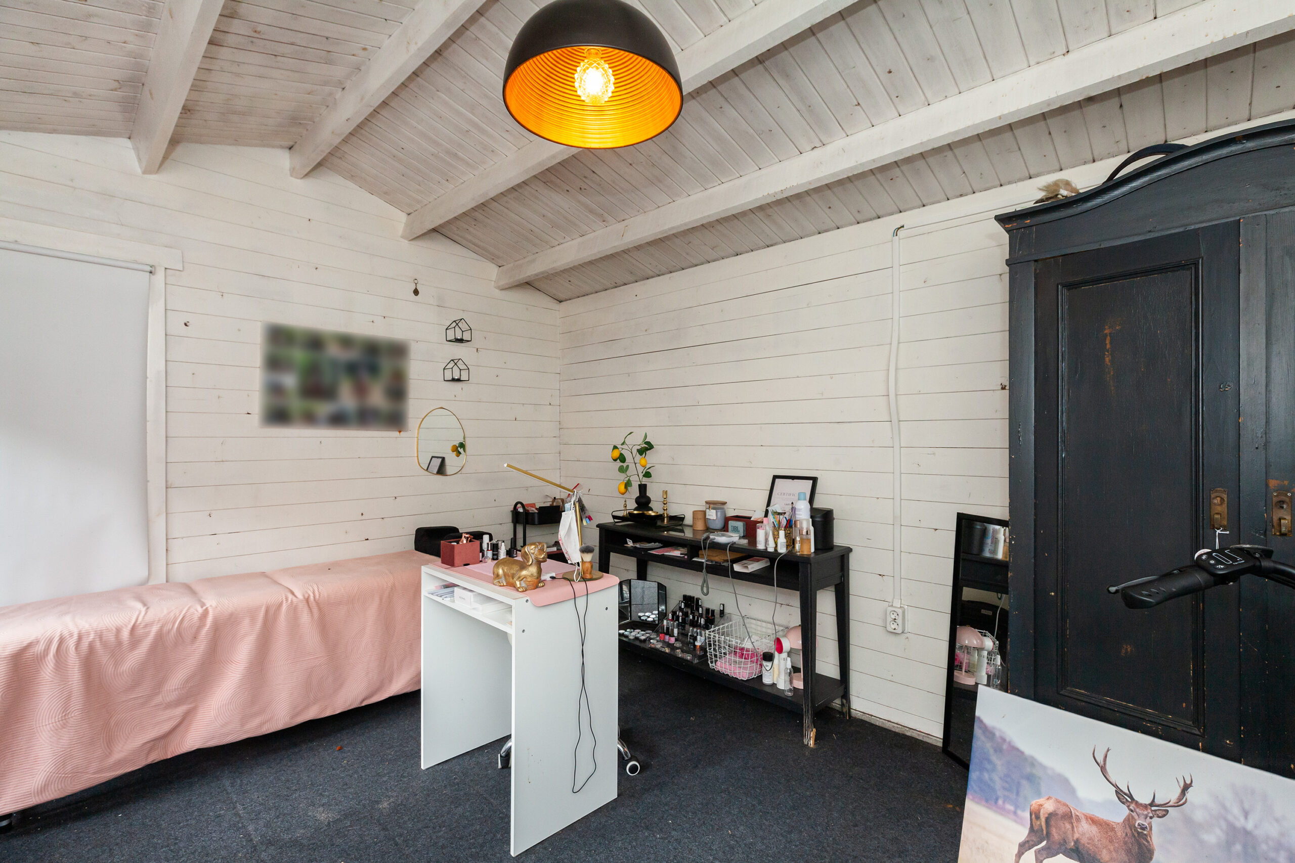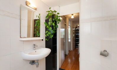 In het achterportaal heeft u achter het gordijn de aansluitingen voor uw wasapparatuur en een wastafel. Daarnaast is er toegang tot de achtertuin.