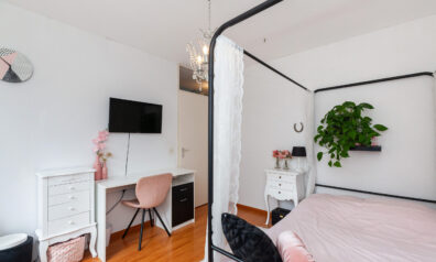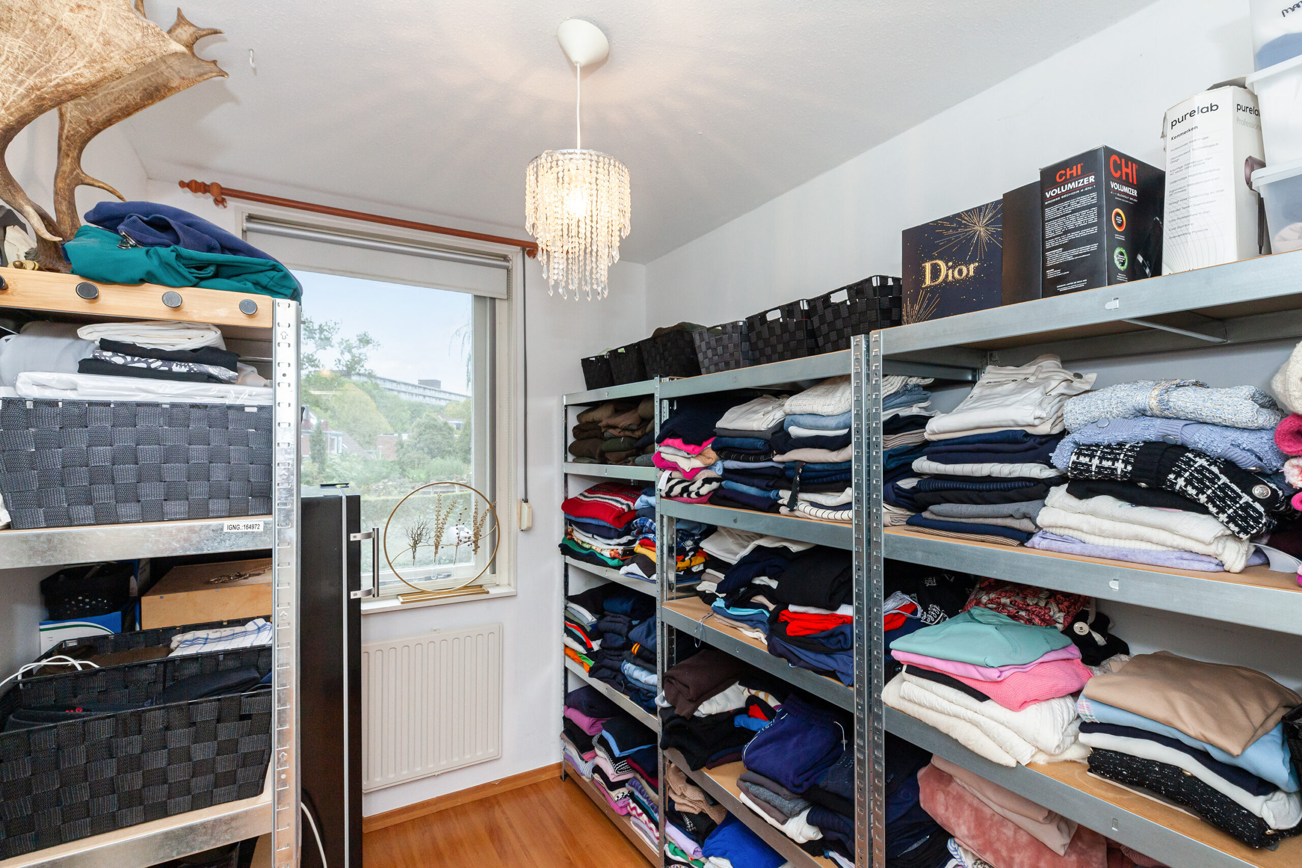 Deze slaapkamer is eveneens aan de voorzijde gesitueerd en momenteel in gebruik als inloopkleedkamer.