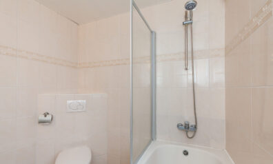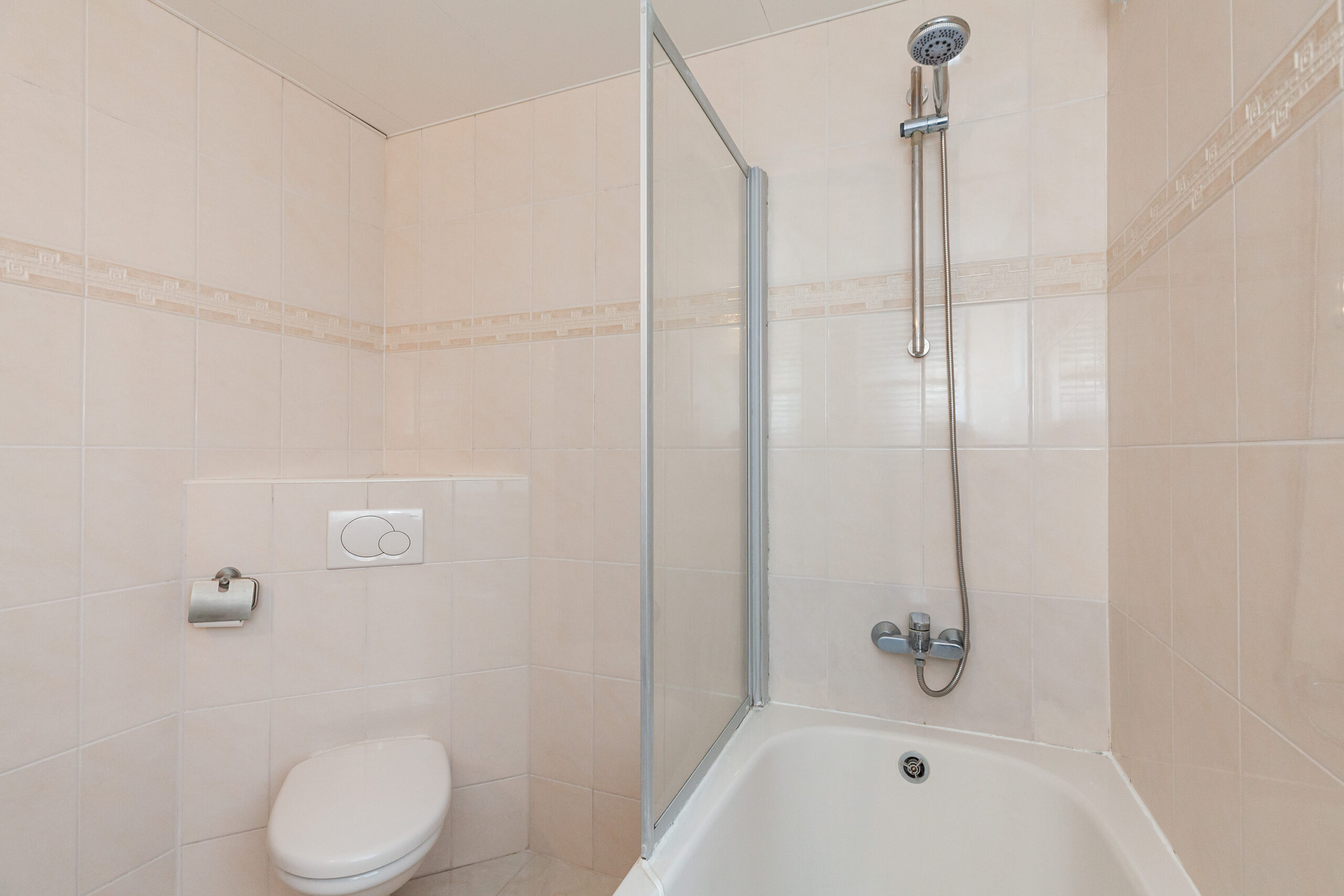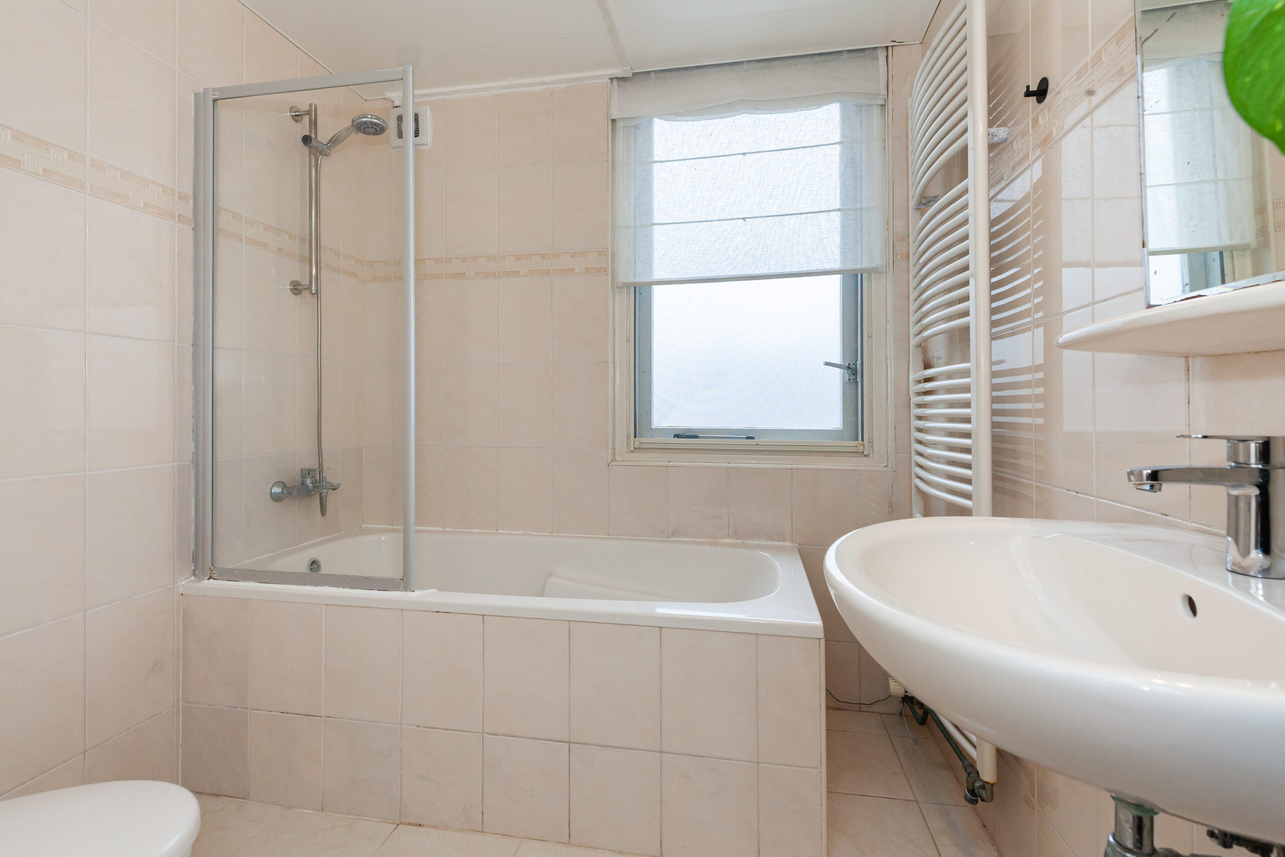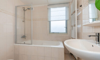 De badkamer is voorzien van alle gemakken en in lichte kleurstelling afgewerkt. Er is een ligbad met douchegelegenheid, wastafel, toilet en een designradiator.