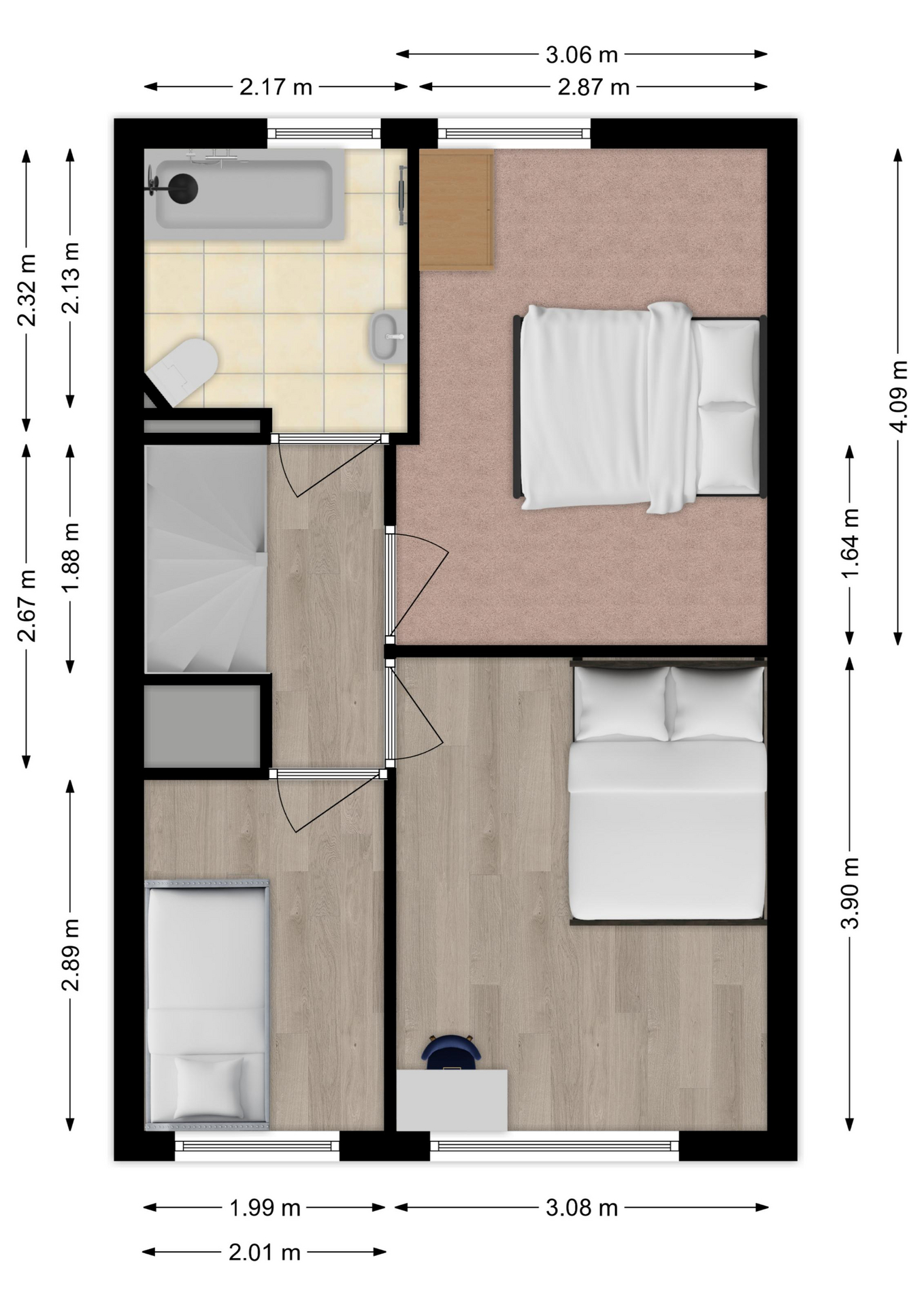 Maatvoering: Circa 3.06/2.87 x 4.09m