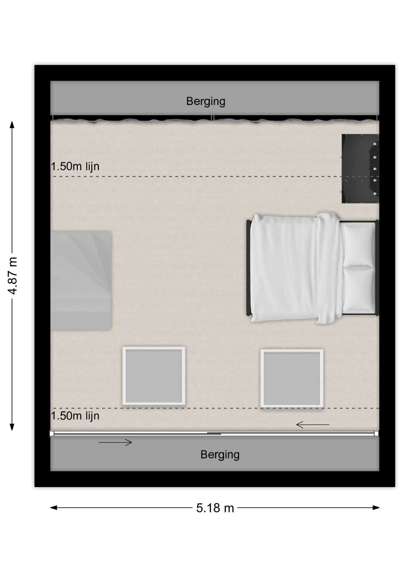 Maatvoering: Circa 5.18 x 4.87m (excl. bergingen)